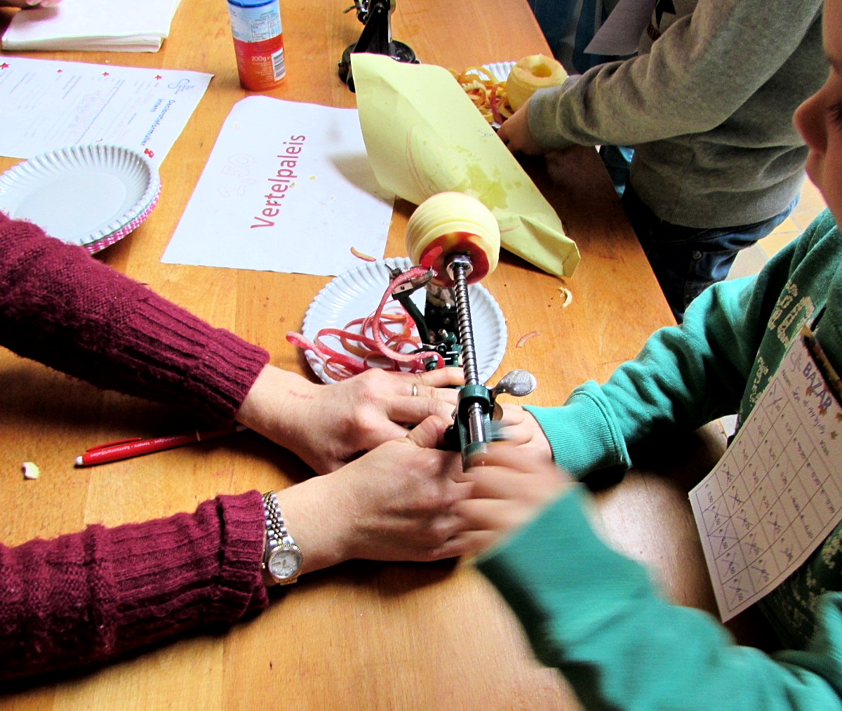 לסיכום היום: קנינו שתי בובות פרווה ושני משחקי קופסא יד-שנייה, אכלנו עוגות וקינחנו ב – poffertjes. והיה נחמד, באמת. להסתובב כך במסדרונות בית הספר, להיות (חלק מהזמן) חלק מהצוות, להיכנס לכיתות אחרות ולראות הורים אחרים שמתפקדים באותו רגע כצוות, לראות פרצופים מוכרים של הורים וילדים שעובדים יחד או משתתפים באיזו פעילות – כל זה הרגיש ממש כמו להיות חלק מקהילה.