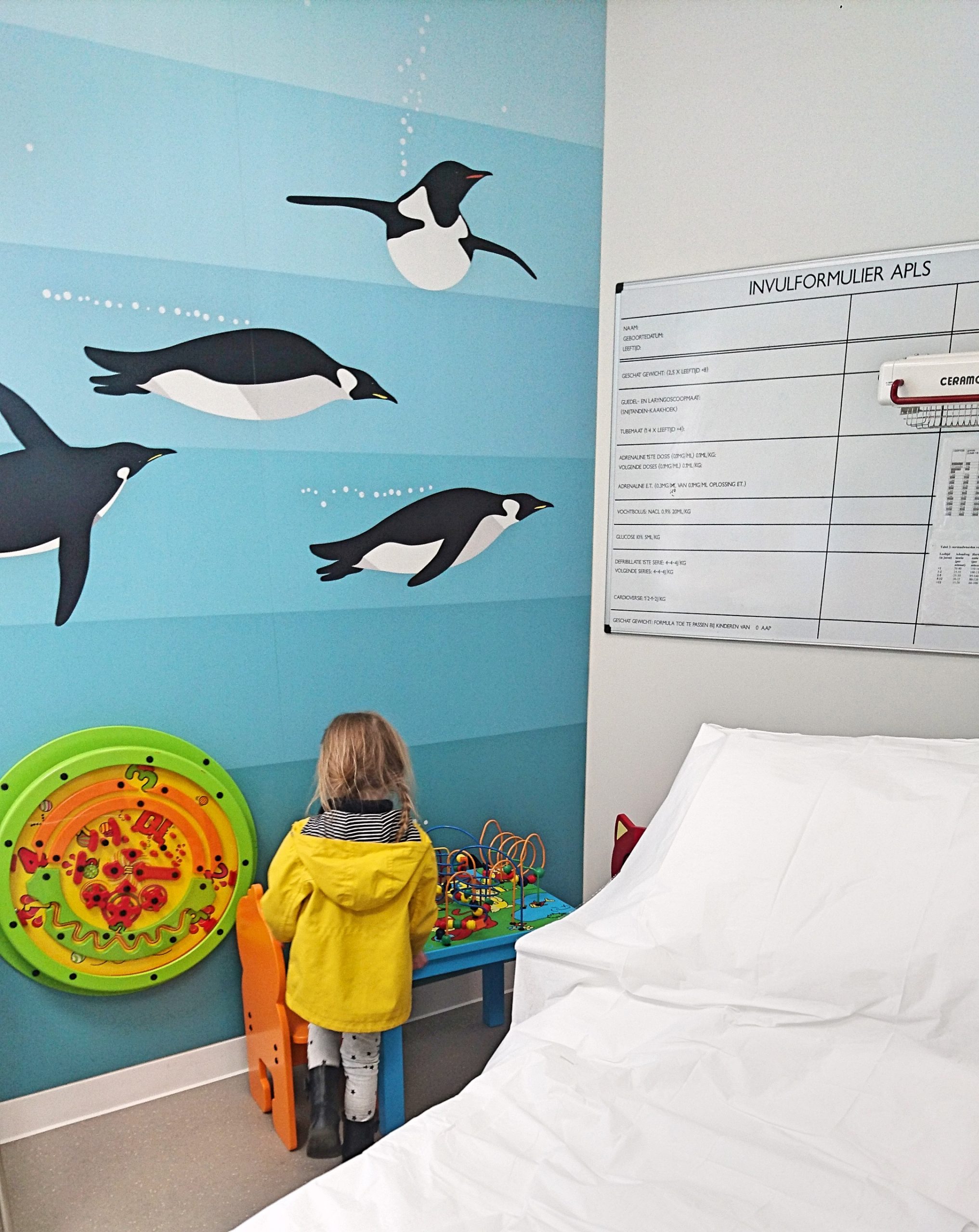 בדרך לשם ד׳ הסבירה לחברה (שגם היא ד׳, לכן נמשיך לכנות אותה כאן החברה) שאין מה לדאוג, שאנחנו הולכים לבית החולים ״שלה״ (הייתה שם פעם אחת בבדיקה ולכן חשה בבית), ושהיא תשכב על המיטה וזה לא יכאב. אני מצדי ניצלתי את ההזדמנות לתרגל קצת סטריאוטיפים מגדריים ובכל פעם שהזכרתי צוות רפואי אמרתי: ״הרופאה תבדוק אותך״ ״הרופאה תבוא״ ״הרופאה תסתכל״ וכו׳ (בהולנדית זה קל יותר, פשוט אומרים dokter). זה לא שבאמת ידעתי מאיזה מגדר יהיה הצוות הרפואי, אבל חשבתי שנתאים את הפנייה למי שלא יגיע. עד אז, אין סיבה שברירת המחדל תהיה רופא.