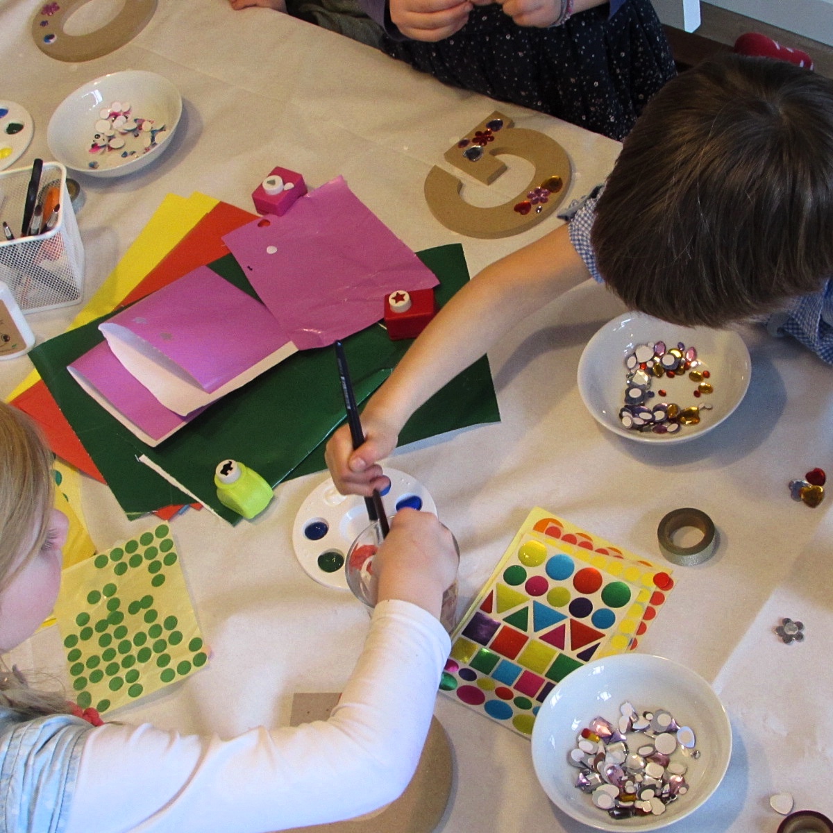 רשימה יש, הזמנות יש, אישורי הגעה יש. רק תוכנית אומנותית – אין. ר׳ ואני צללנו למעמקי הרשת הגדולה (אני בעיקר פינטרסט, ר׳ יותר בסגנון חופשי), ווהצלחנו פחות או יותר להרכיב תוכנית שקוויה הכלליים נראו כך: הליכה מבי״ס (יאיי! הבית במרחק הליכה) > האכלת גדוד ילדים רעבים בפיצה > 3 משחקי חברה קלאסיים (כיסאות מוזיקליים, תחרות עיטוף בנייר טואלט, עוד משהו עם כיסוי עיניים) ומשחק אחד שיוביל לפעילות יצירה > הפסקה לצורך אכילת דברים עם סוכר + נרות + פתיחת מתנות > פעילות יצירה > צריכת עוד קצת סוכר > דינג-דונג ההורים באו לאסוף אתכם ביי.