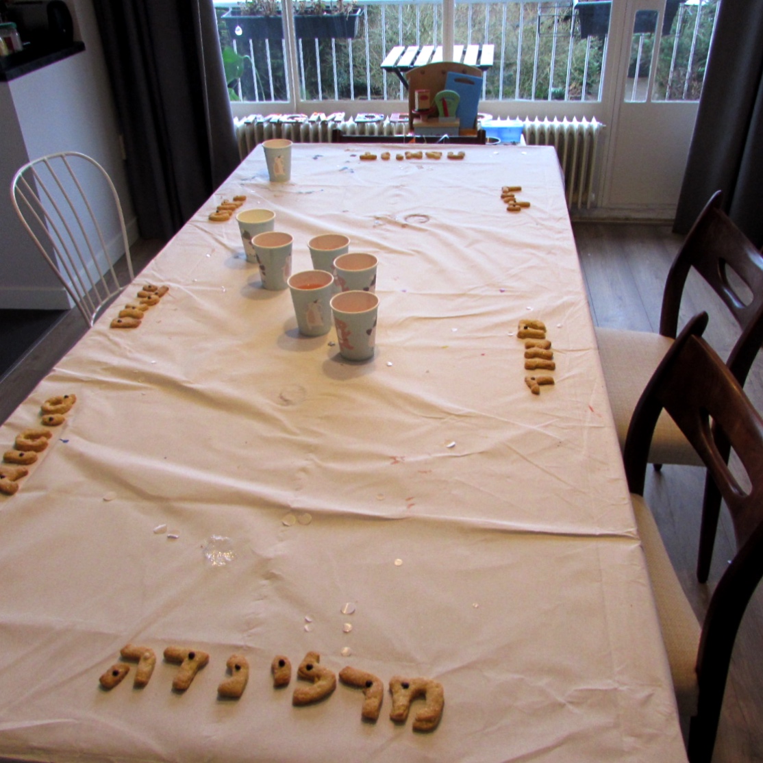 מי שעוקב אחריי בטוויטר יודע שיום לפני כן אמא שלי ו – ד׳ אפו עוגיות עם השמות העבריים של כל המשתתפים, במסגרת הנושא הכללי של אותיות. להפתעתי נרשמה התלהבות (וכל הורה קיבל צילום של הילד שלו ליד שמו בעברית)