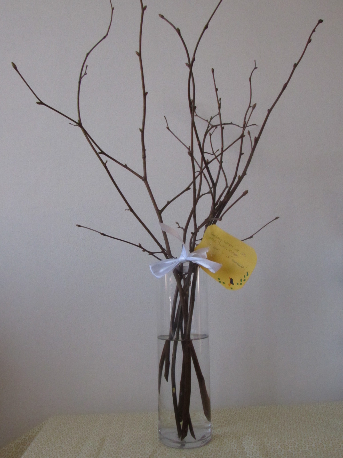 (בפתק כתוב: היום שמענו את שירת השחרור. האביב בפתח!)