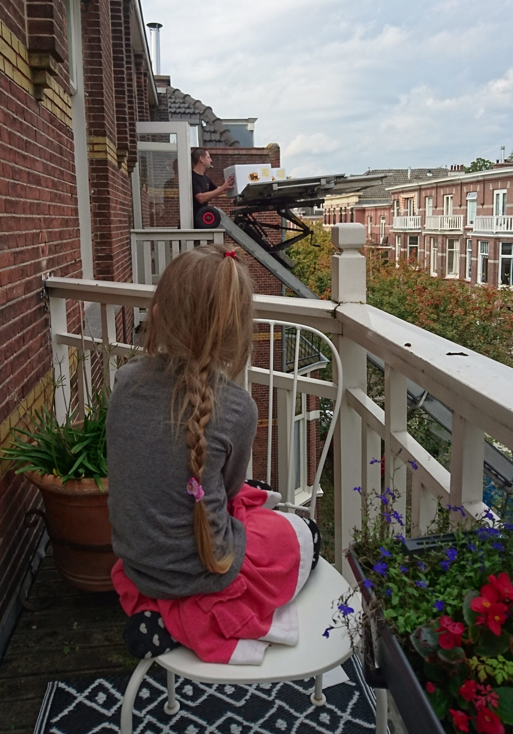 ואז לפני חודשיים אבא של מ׳, מורה לריקוד במקצועו, קיבל עבודה בצרפת והם החליטו לעבור (אחרי 7 שנים בהולנד). ובאחד מימי השבוע הגיעה משאית ענקית עם מנוף גדול ועל המרפסת הקטנה עמדו פועלים וארזו והעמיסו והסיעו.
