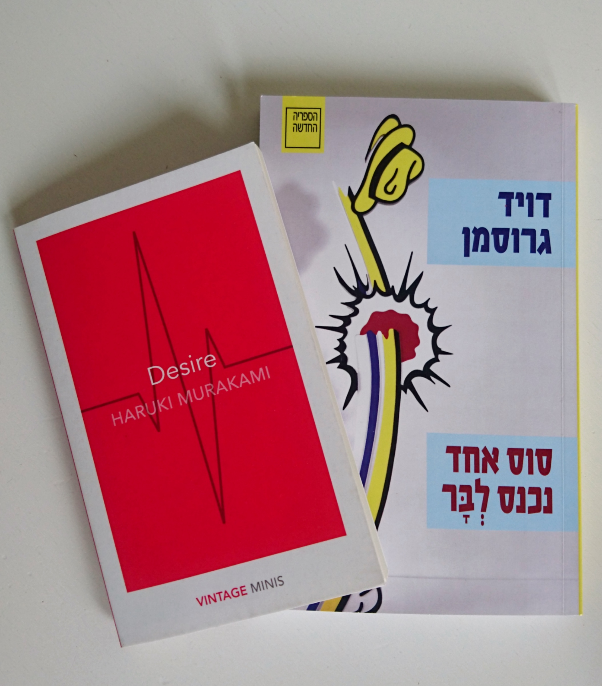 את גרוסמן קיבלתי מ – פ׳ ונזכרתי שיש לי אותו רק אחרי שזכה בפרס וכל העניינים מסביב. את מורקמי קניתי בפריסלנד כי לא יכולתי לעמוד בשילוב של סיפורים קצרים, מורקמי ותשוקה. ובאמת, מי יכול?