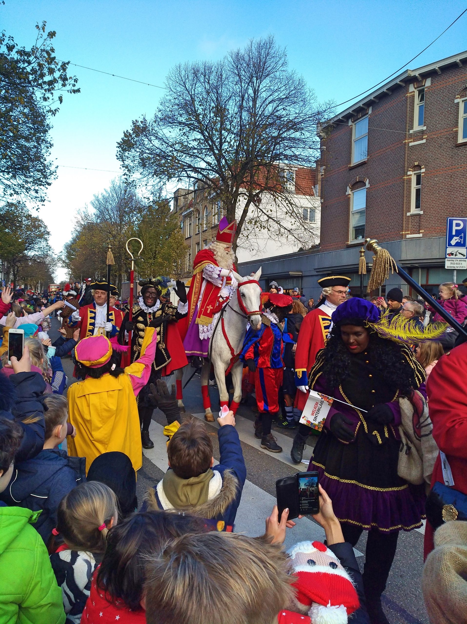 על מי זה סינטרקלאס, איפה הוא מסתובב בדרך כלל ומה הוא עושה כשהוא בהולנד, כתבתי פה, אז לא אחזור על עצמי. בקיצור, בשבת הוא הגיע. החלטנו לא ללכת לחוף לראות אותו בספינה, אלא לקבל את פניו קצת מאוחר, באחד הרחובות של האג. מדובר בתהלוכה ארוכה מאוד, שהולכת מחוף הים אל העיר ונמשכת כמה שעות. כן, סוגרים חצי מהאג בשביל העניין הזה.