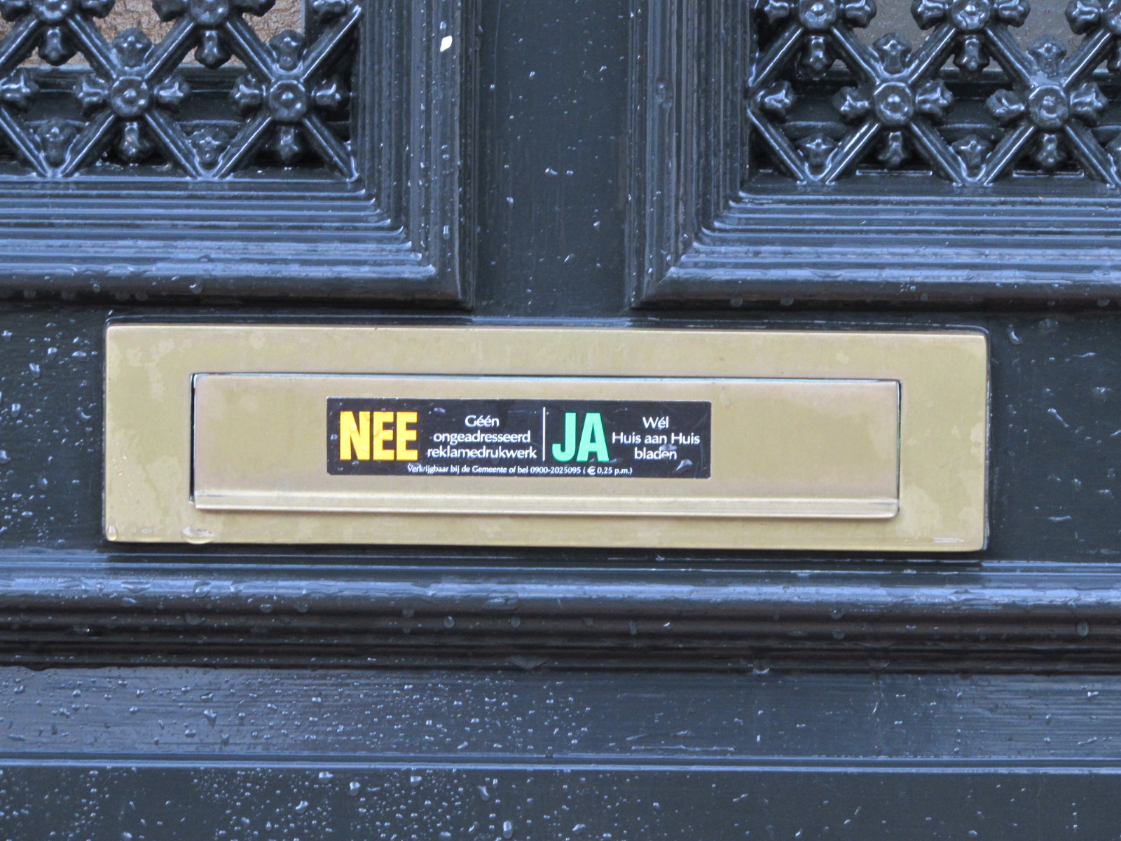על אותו עיקרון, אפשר גם להזמין מדבקה מיוחדת לתיבת הדואר שאומרת: לא לדואר פרסומי או לא למקומונים חינמיים או לא לשניהם גם יחד. במפתיע, די מכבדים את זה פה.
